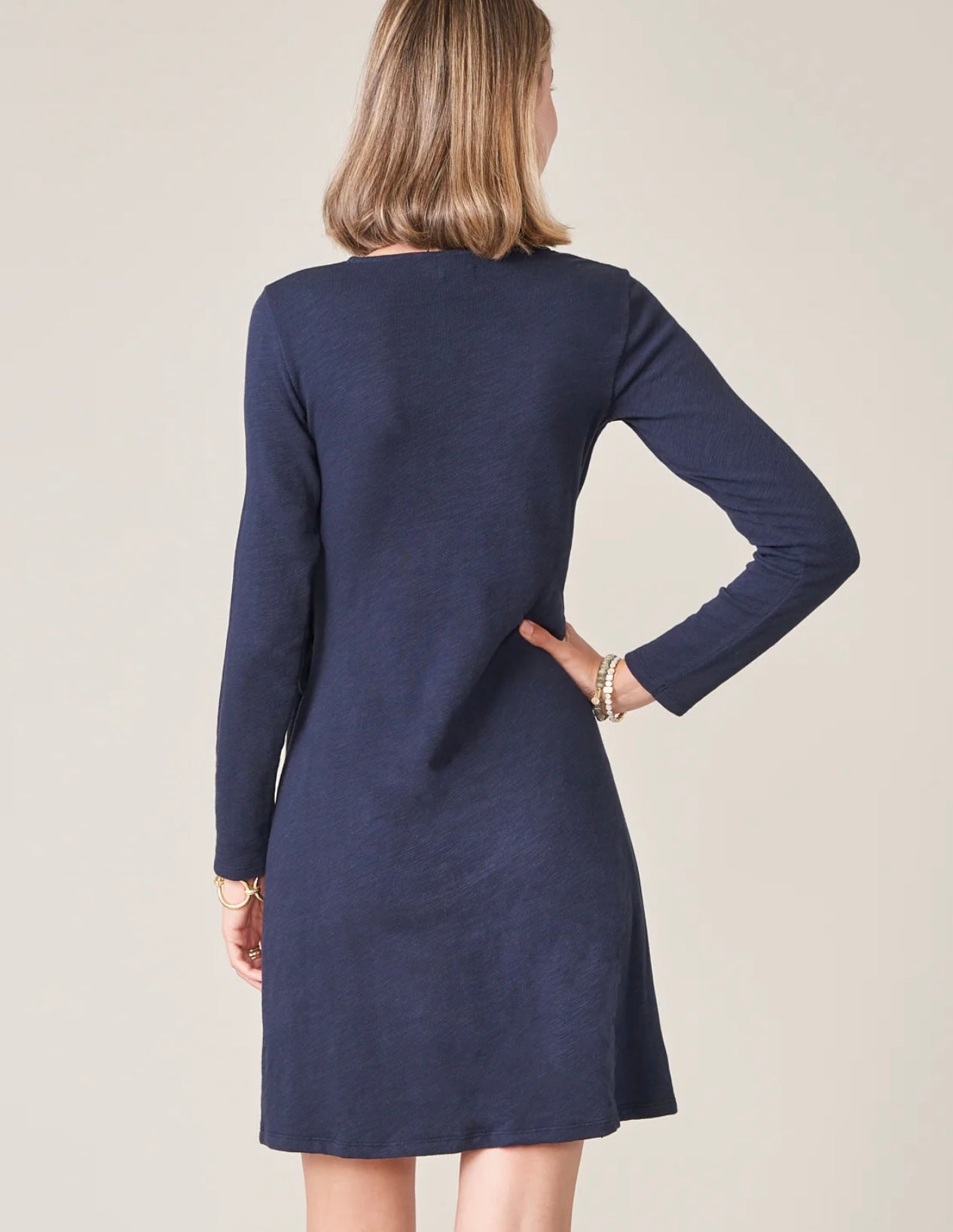 Indulge in elegance with our Spartina 449 Deanna Slate Blue Wrap Dress. Made from a luxurious Pima cotton blend, this long sleeve dress wraps you in comfort and style effortlessly. Pair with a wide brim fedora and boots for a chic daytime look, or dress it up with heels for a sophisticated evening outfit.