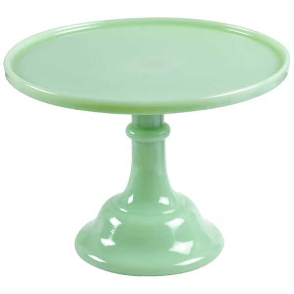 Add a soft pop of vintage charm to your kitchen or entertaining space with this beautiful Mosser Jadite 10-inch Cake Stand. Crafted in that iconic milky green glass, this pedestal stand instantly elevates everything from homemade layer cakes to bakery cupcakes and seasonal décor.